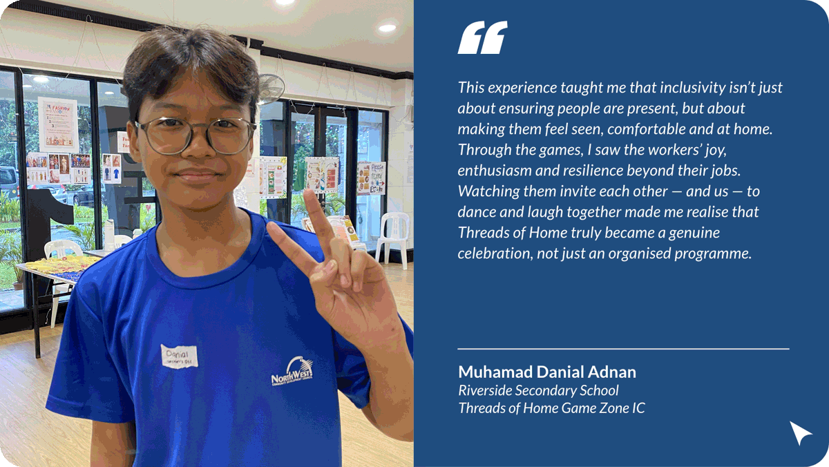 The North West Youth Assembly capped off an eventful year with its signature project – a lively carnival to celebrate International Migrant Workers' Day. Organised in collaboration with the Ministry of Manpower, the event was packed with fun activities, performances, and great food, bringing volunteers and migrant workers together for a day of joy and appreciation.