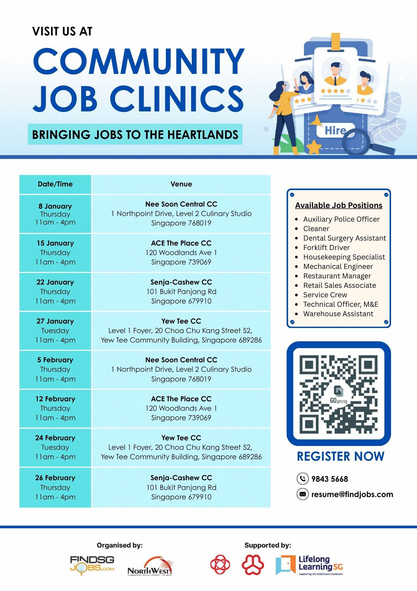 The job clinics are now right within your neighbourhood! Speak to our Job Ambassadors to discover available roles near you, and personalised career guidance between jobseekers and potential employer.